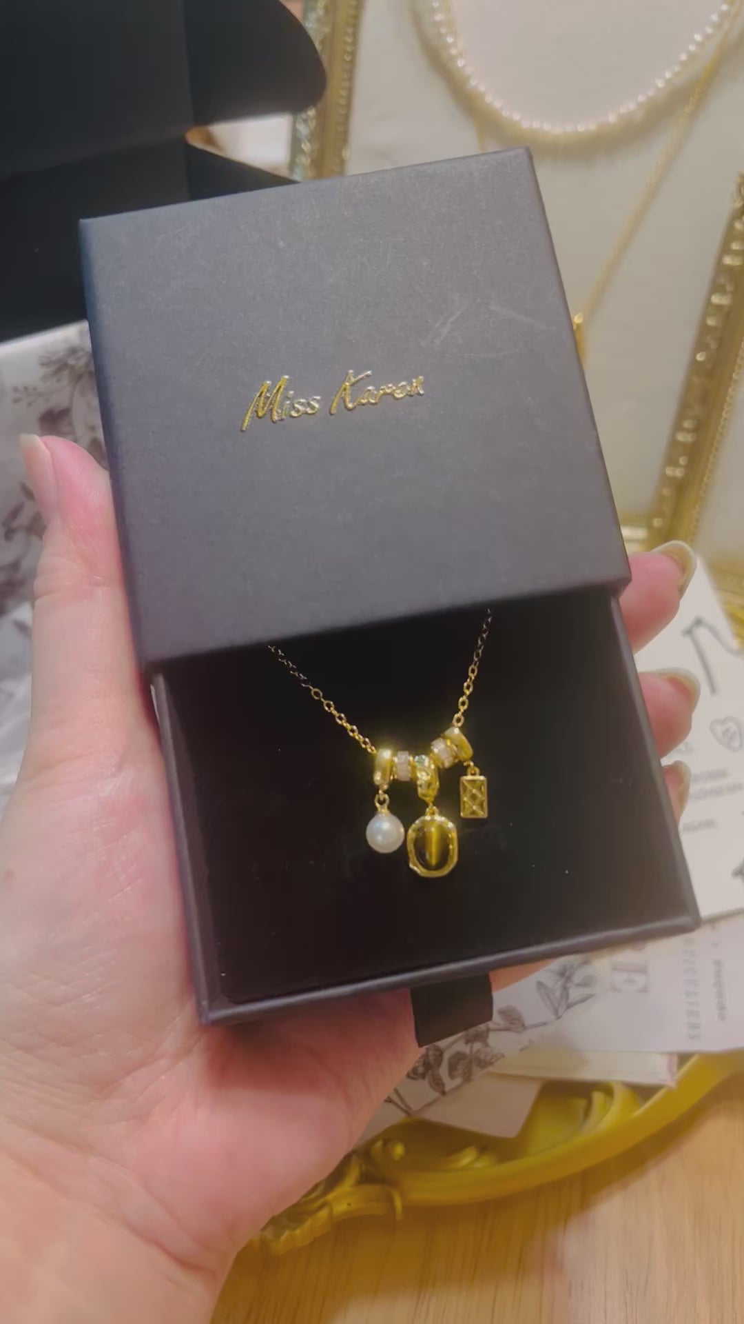 搭配 18K 黃酮工藝、珍珠墜飾與小小信件圖章,